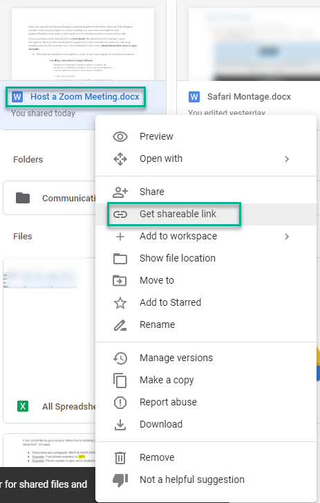 - You can also Right-click over the original document and select Get a Shareable Link.