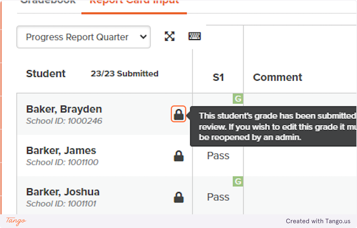 10. You will now see the "Locked" icon for any grades that have been submitted for review.